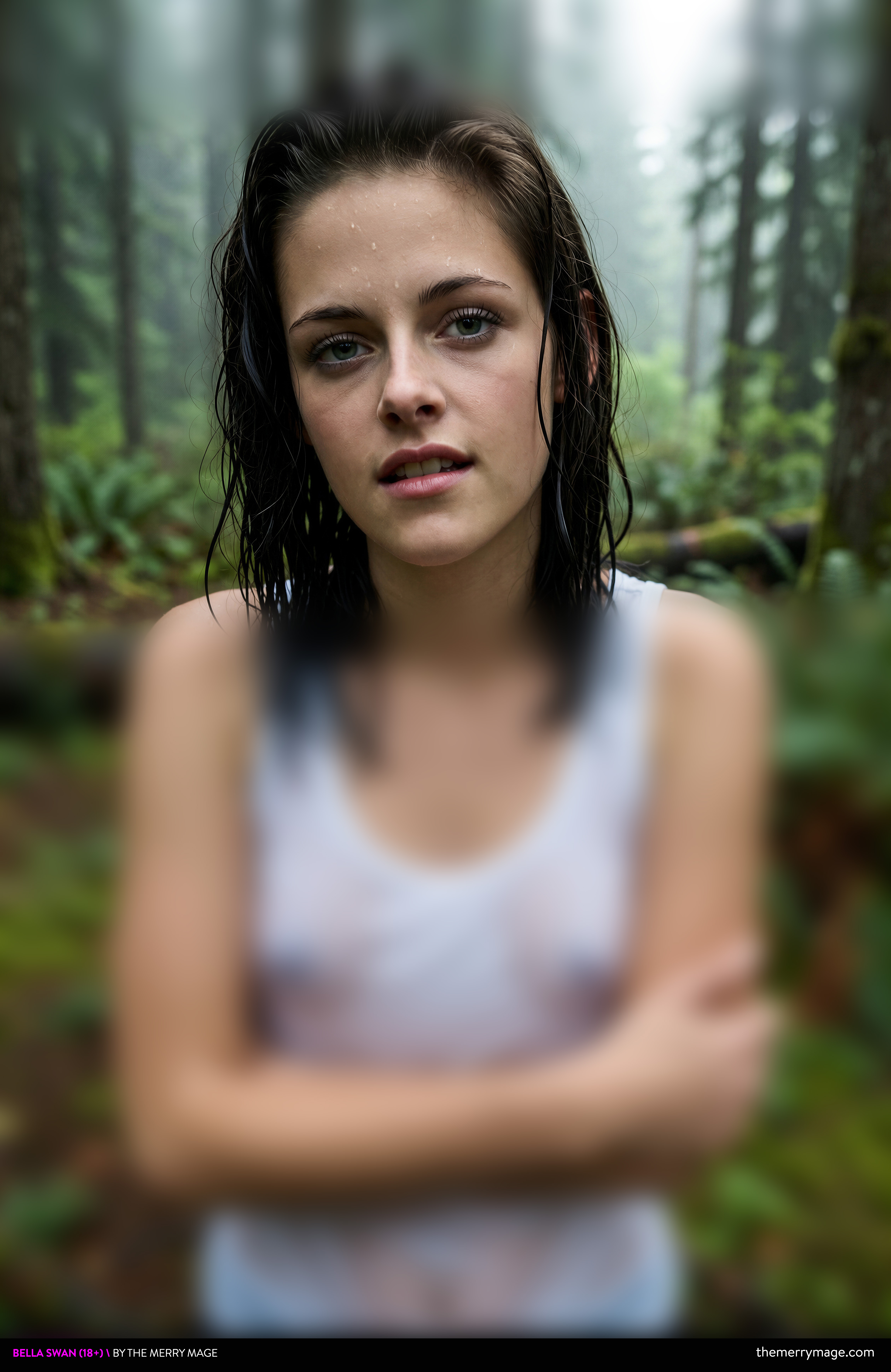 The drops of rain were so light they felt like mist, speckling Bella’s bare skin with tiny droplets that caught the fading light. Jacob zoomed in, capturing the way the water beaded on her collarbone, her shoulders, the curve of her breast.
