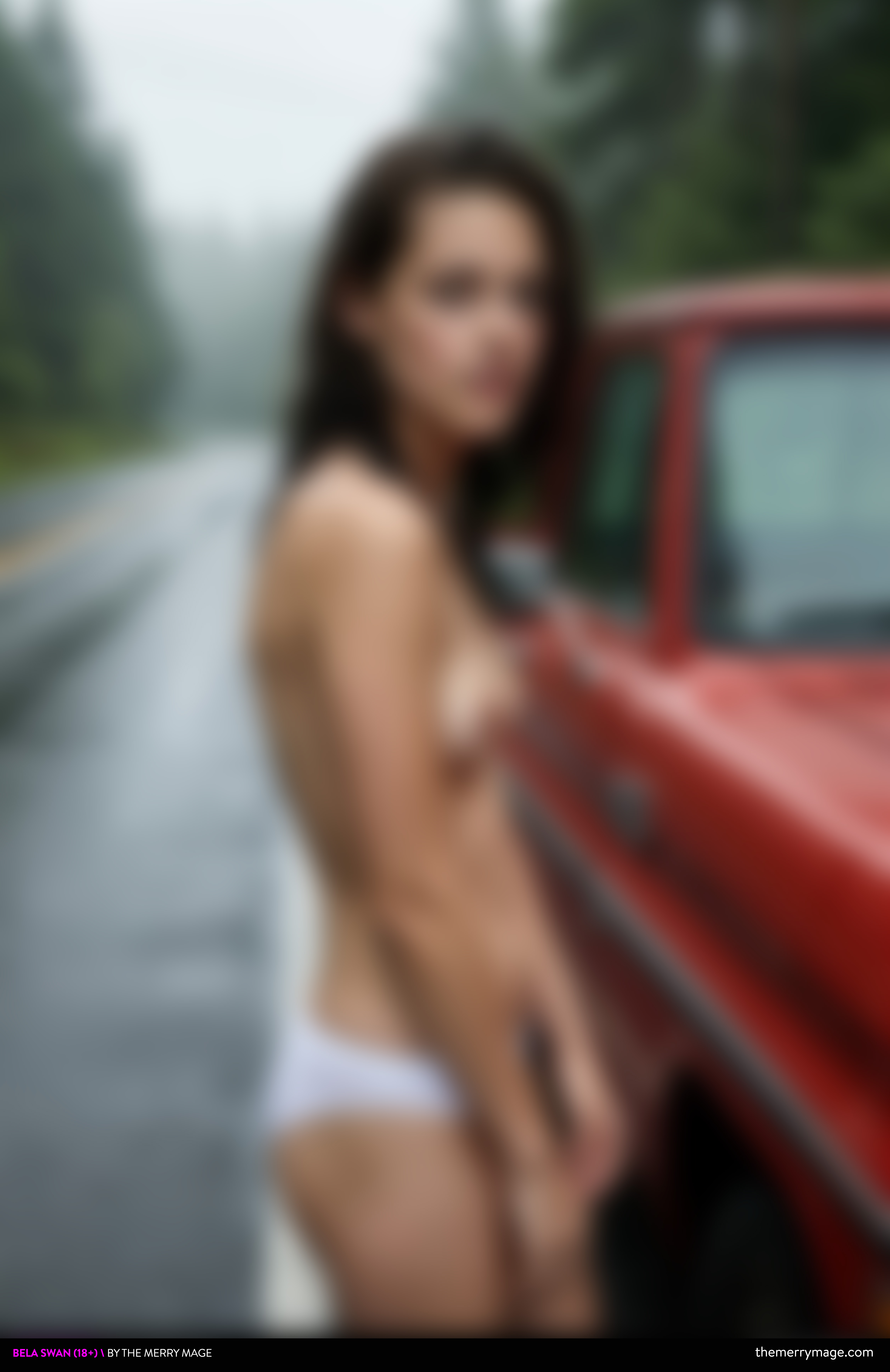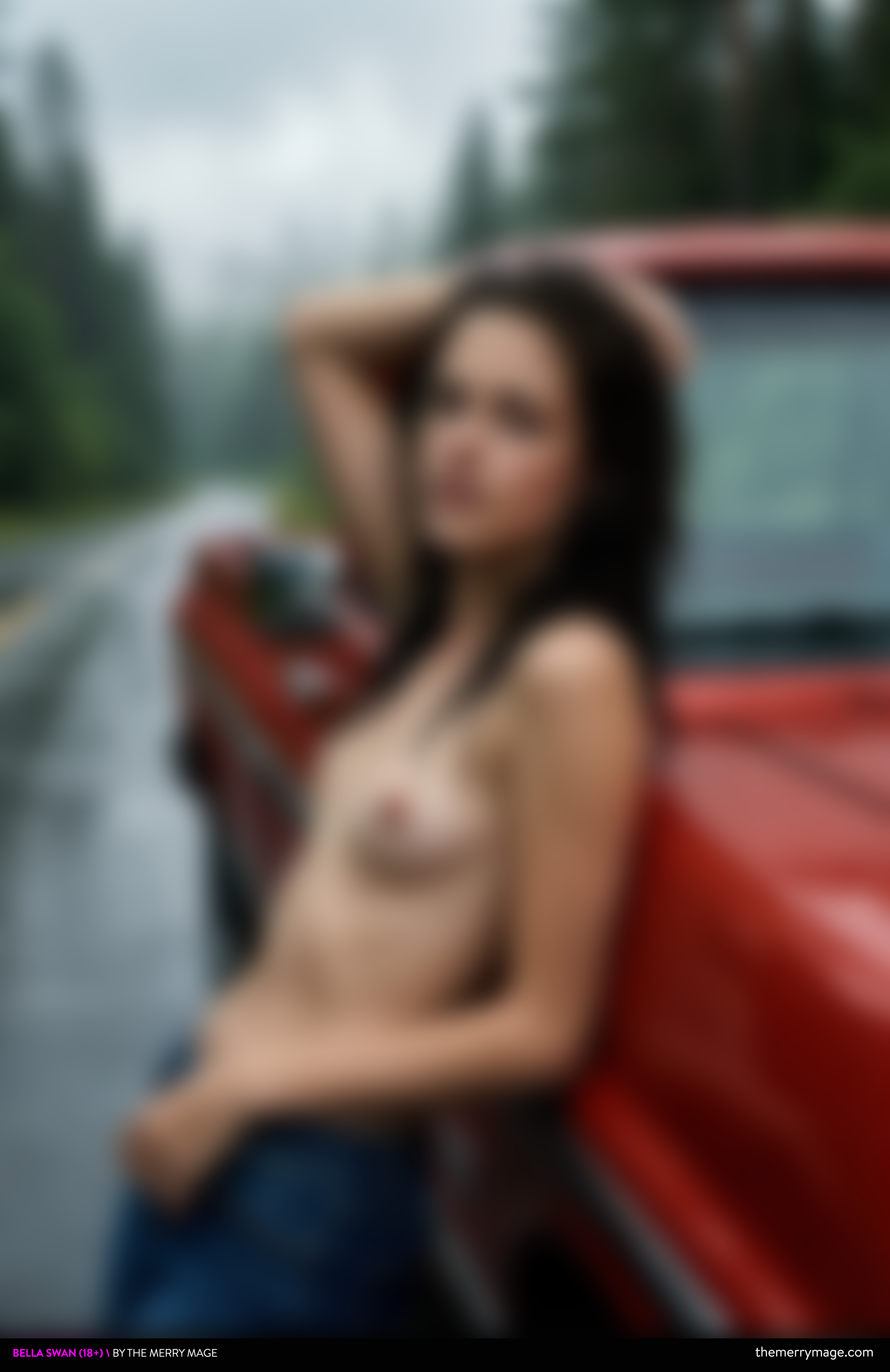 Jacob hesitated, but couldn’t deny her. They walked back to the truck, the forest floor soft beneath their feet. Bella walked ahead, naked and unashamed, while Jacob trailed behind, camera in hand, trying and failing not to stare at the gentle sway of her hips.
