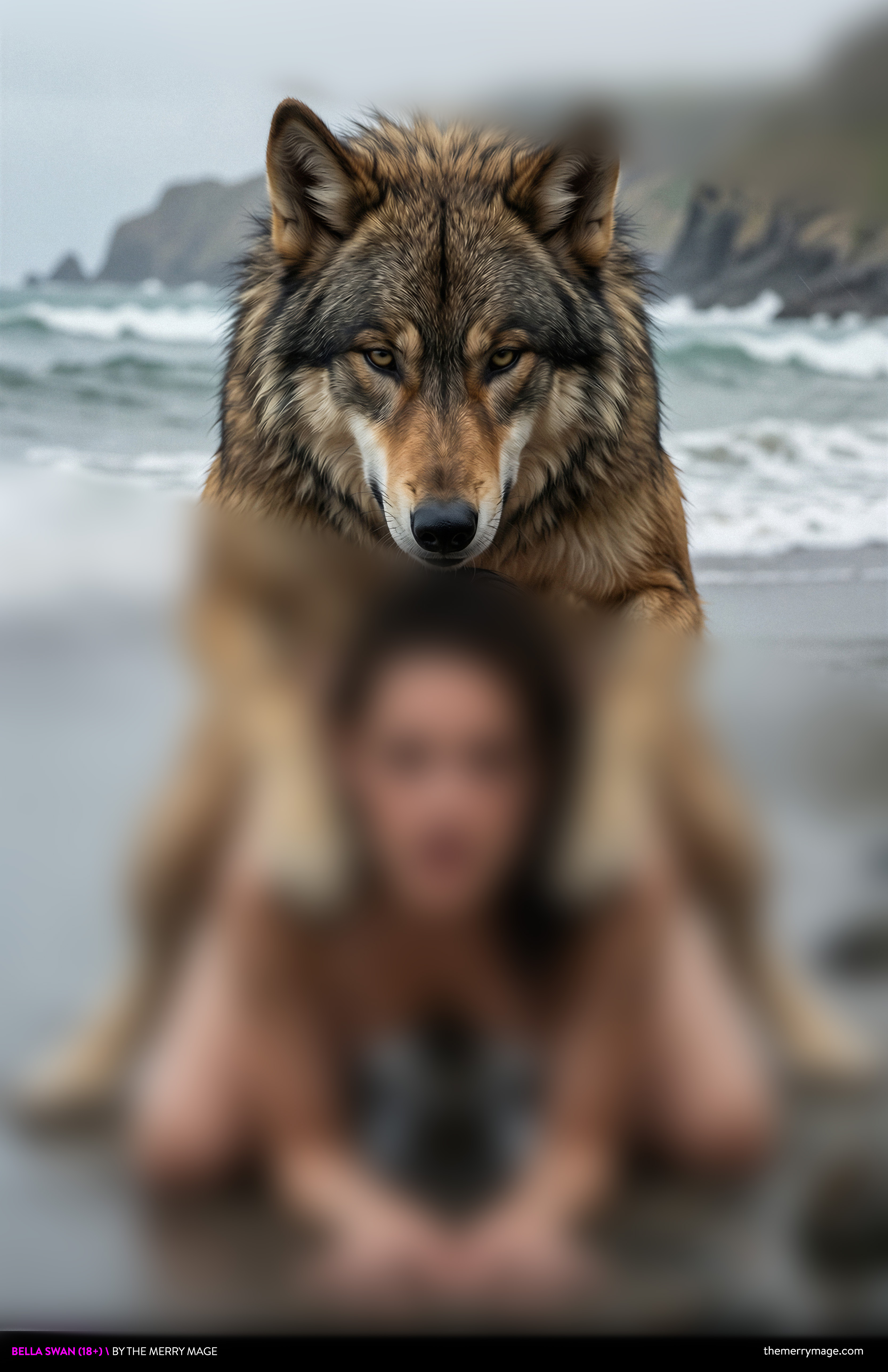 The wolf growled in response, hot breath panting against her neck. His fur brushed against her back, tickling her skin as his movements became more frenzied. The sound of their bodies connecting echoed across the empty beach, punctuated by Bella’s increasingly desperate cries.