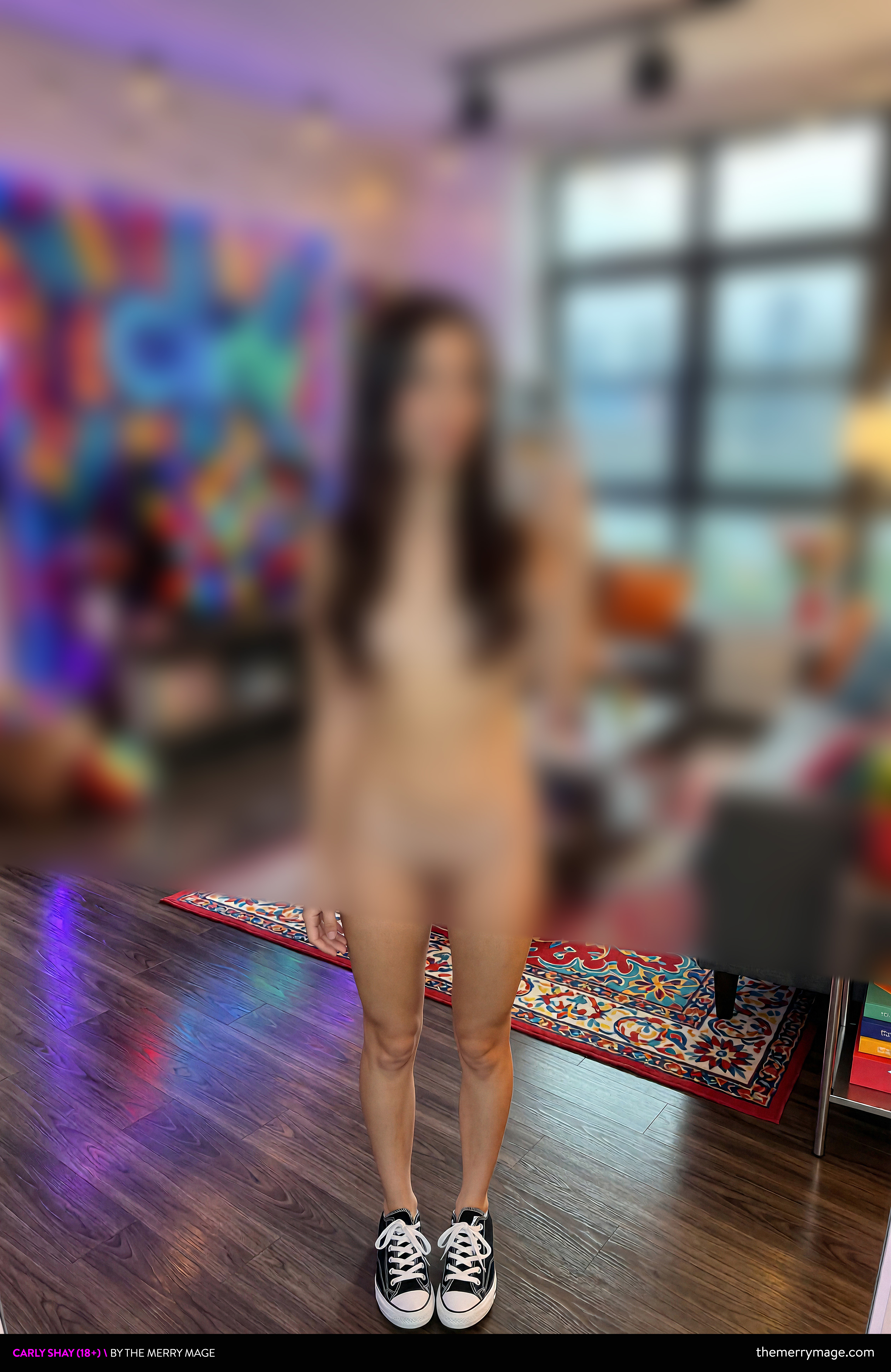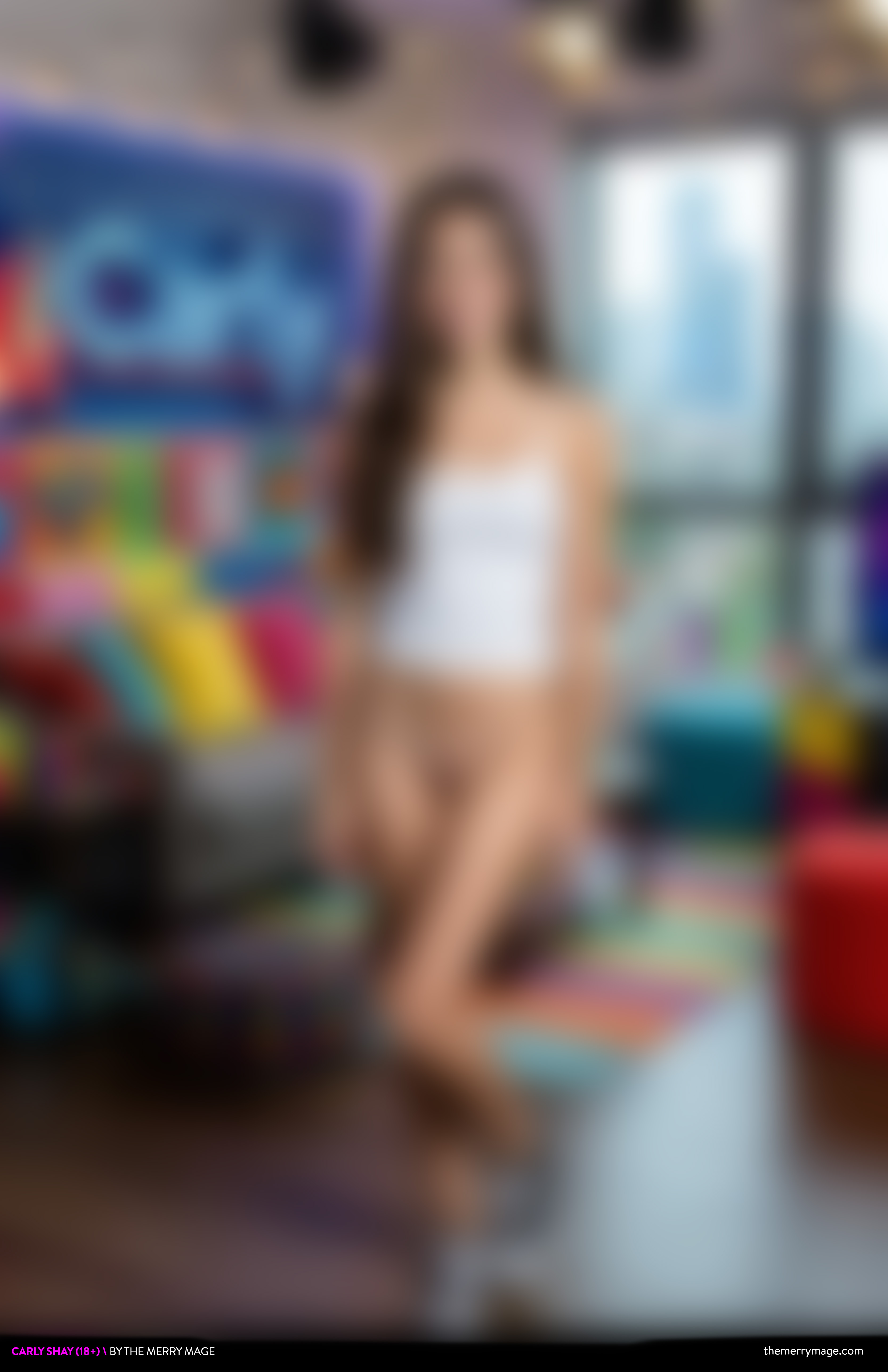 "Taking it to the next level," she said casually, sliding her pants down to reveal a pair of simple white panties. "Just keep shooting."